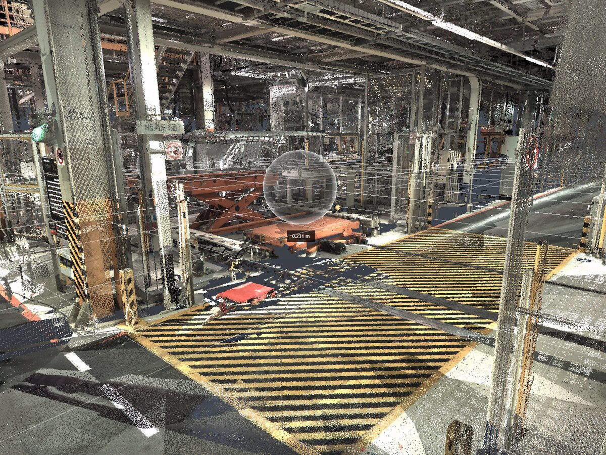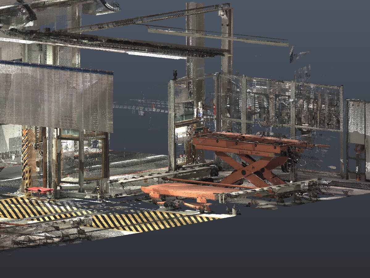 Zadanie nie było proste: winda miała transportować karoserię pomiędzy poziomem 0 i 1, a wolnej przestrzeni było naprawdę niewiele. Dodatkowo, firma nie dysponowała pełną dokumentacją techniczną hali ani aktualnym modelem linii produkcyjnej. W takiej sytuacji tradycyjne pomiary byłyby ryzykowne i czasochłonne – dlatego klient zwrócił się do nas.