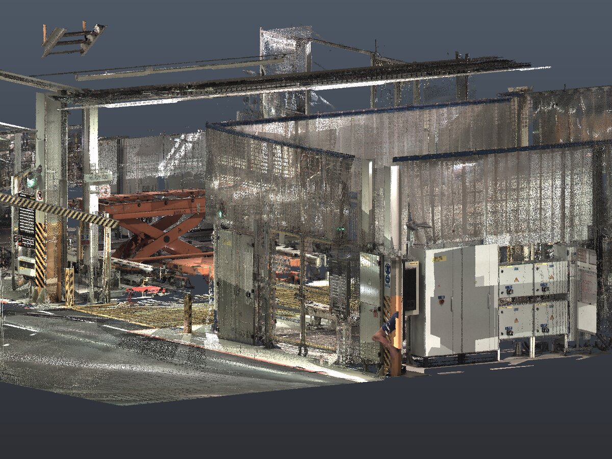 Wykonaliśmy precyzyjne skanowanie 3D fragmentu hali – wraz z całą okoliczną infrastrukturą, konstrukcjami, rurami i maszynami. Dzięki temu powstał dokładny, przestrzenny model całego obszaru, który umożliwił projektantowi windy zaprojektowanie konstrukcji idealnie "na styk".