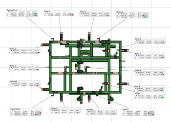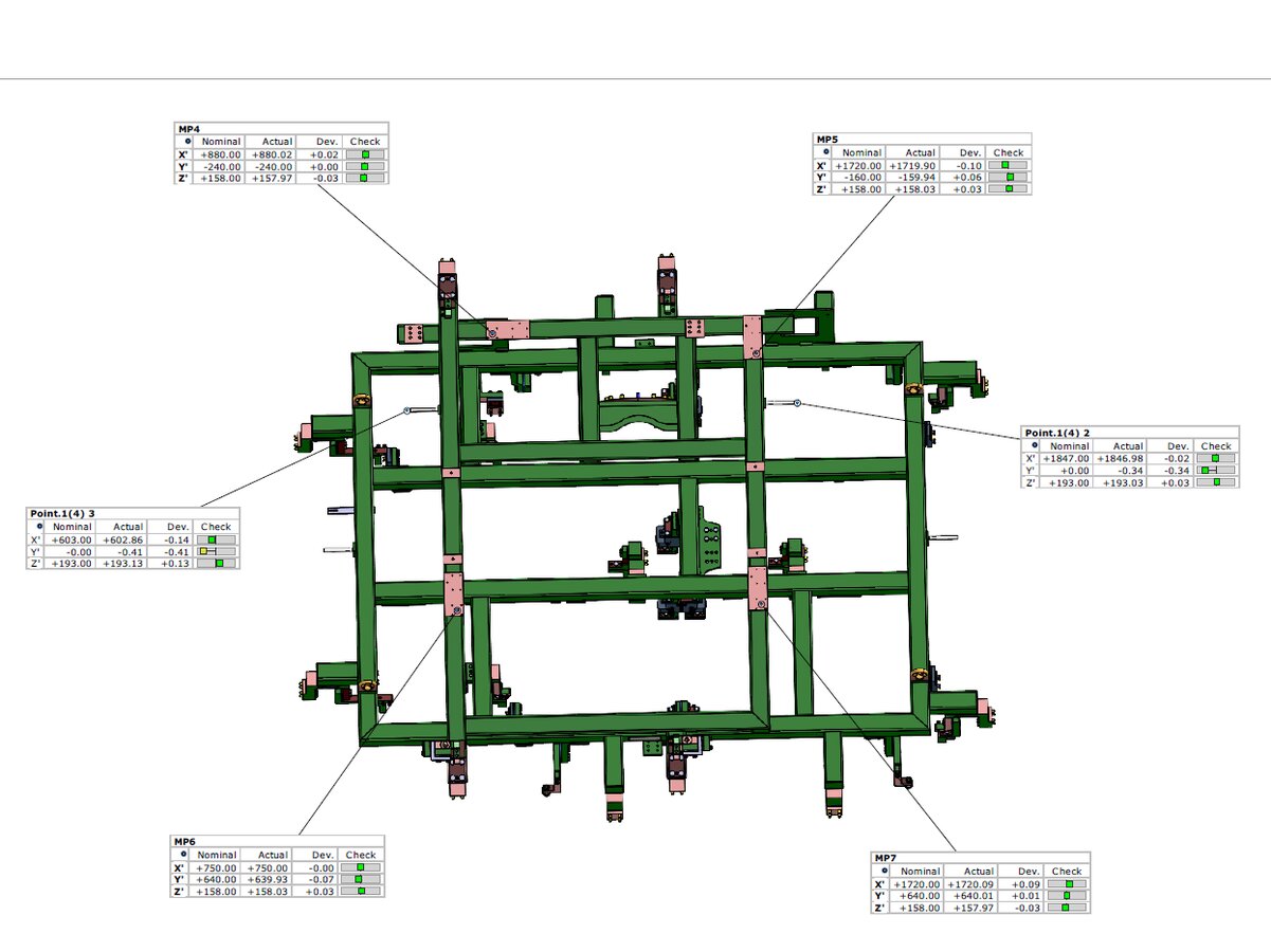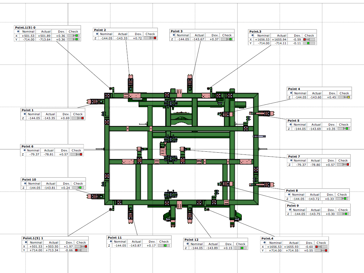 Na podstawie zebranych danych przygotowaliśmy przejrzysty raport pomiarowy, w którym zestawiliśmy planowane współrzędne z rzeczywistymi wynikami pomiarów. Dzięki temu klient mógł łatwo zidentyfikować ewentualne odchyłki i w razie potrzeby wprowadzić korekty jeszcze przed dostarczeniem stanowiska do odbiorcy końcowego.