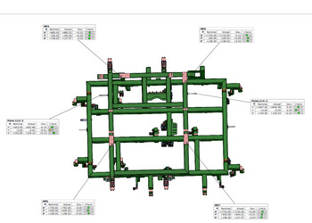 Pomiar został wykonany przy użyciu naszej optycznej maszyny pomiarowej opartej na technologii fotogrametrii. To rozwiązanie pozwala na szybkie i bardzo precyzyjne zebranie danych geometrycznych nawet dla dużych konstrukcji stalowych.